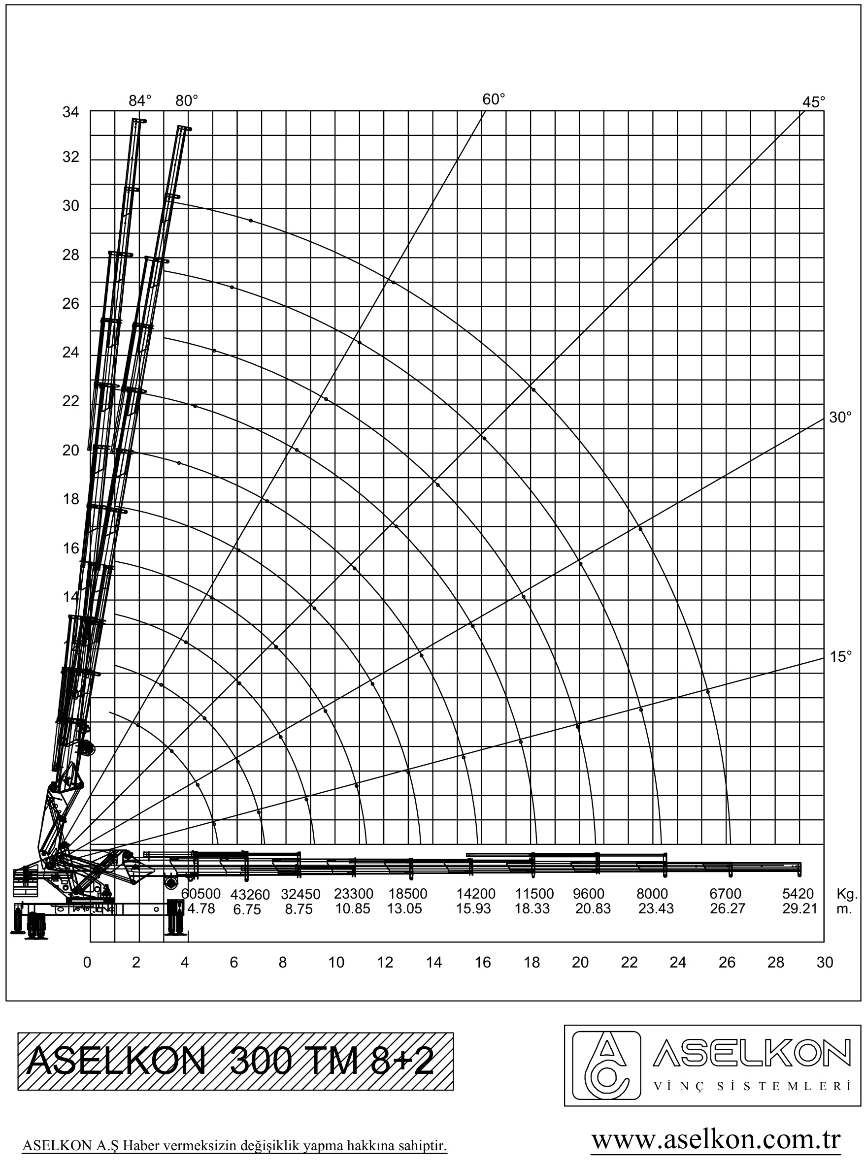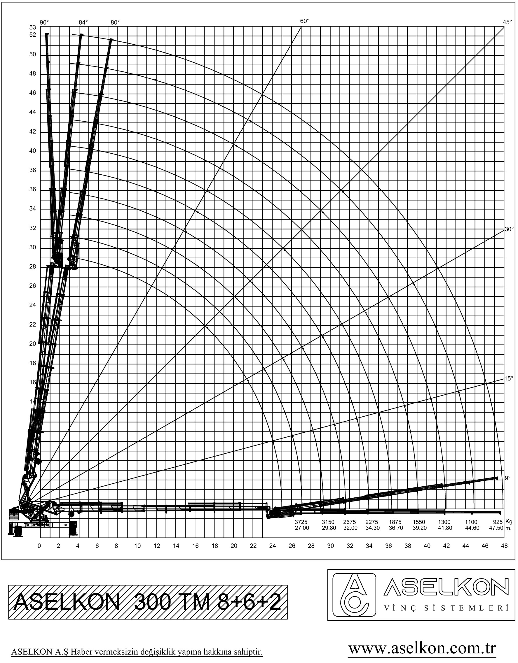 Tonaj Marka Model Bom Uzunluğu Maksimum dikey hidrolik uzanma Maksimum dikey mekanik uzanma Maksimum yatay hidrolik uzanma Maksimum yatay mekanik uzanma