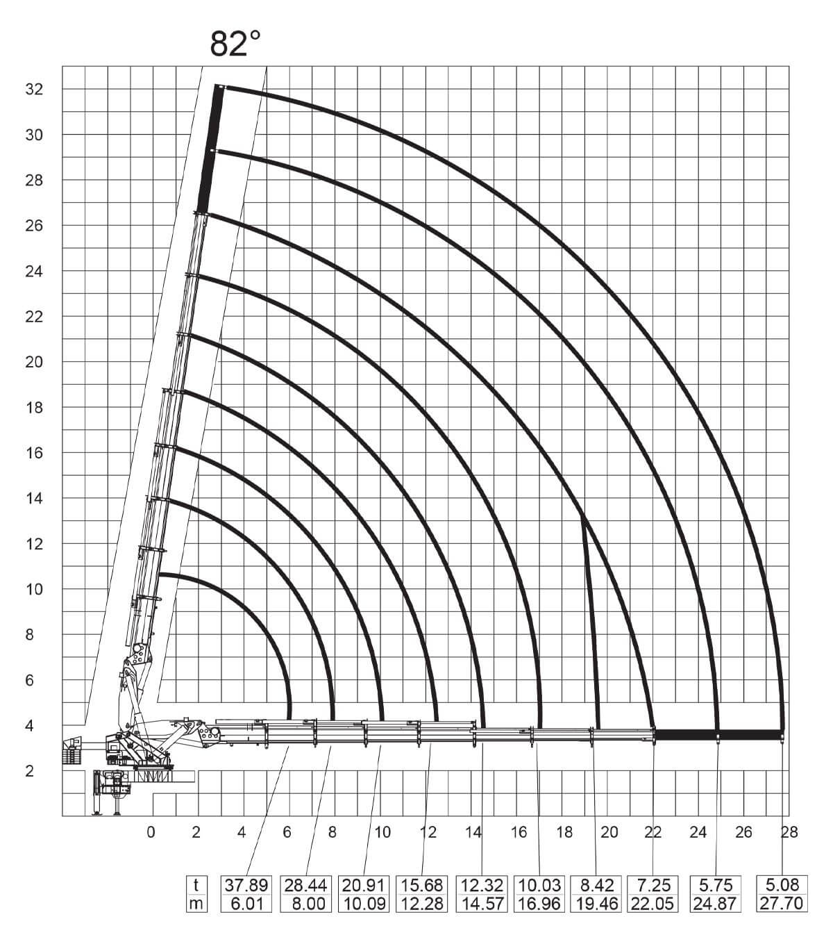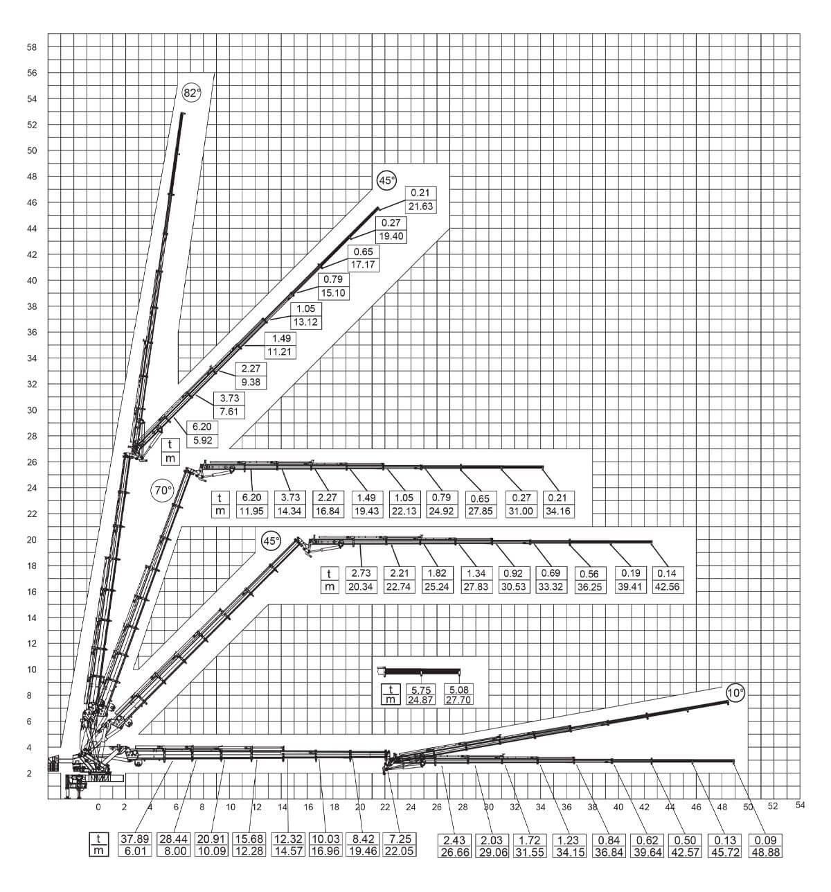Tonaj Marka Model Bom Uzunluğu Maksimum dikey hidrolik uzanma Maksimum dikey mekanik uzanma Maksimum yatay hidrolik uzanma Maksimum yatay mekanik uzanma